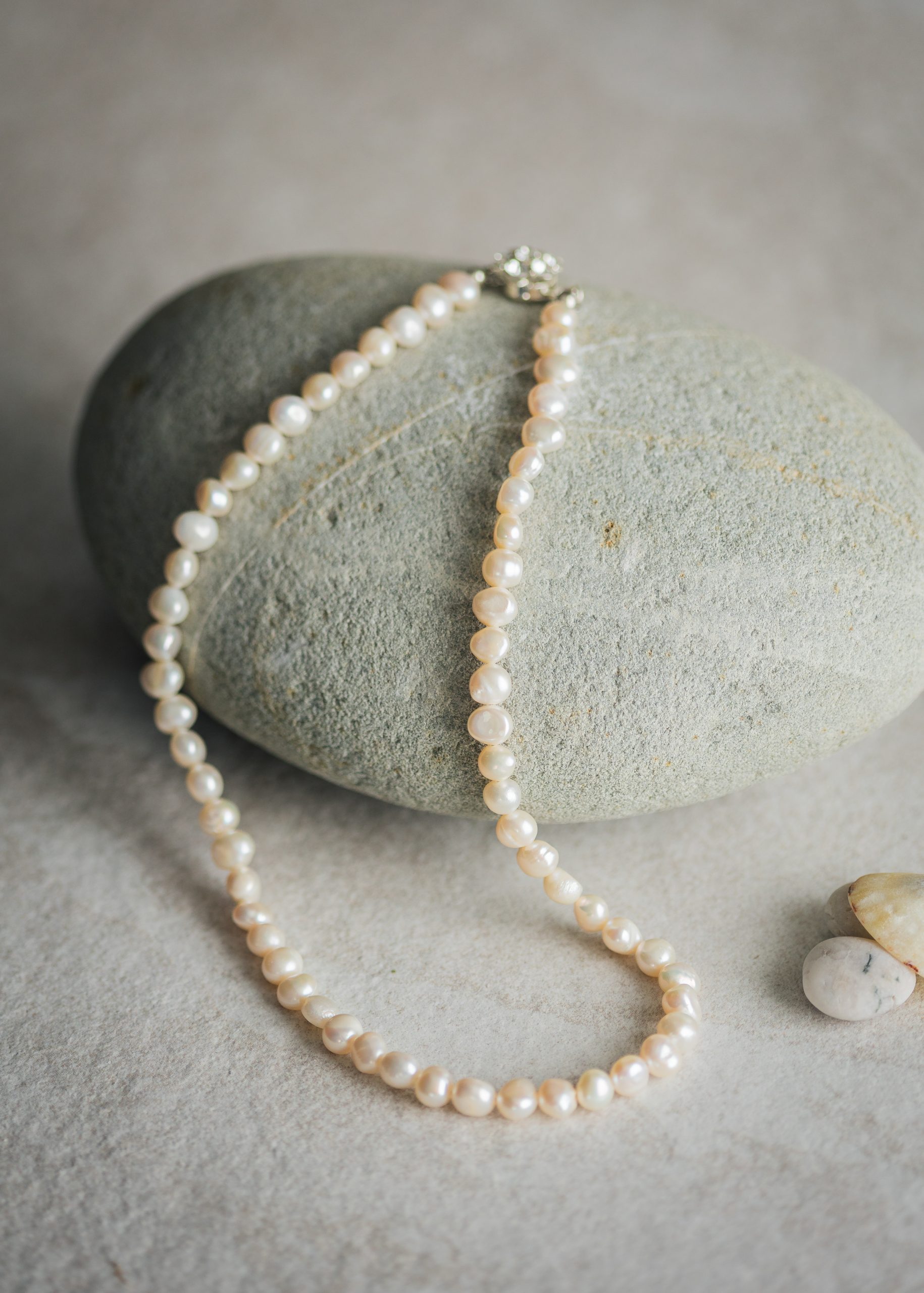 A Single Strand Freshwater Pearl Necklace with Crystal Clasp
